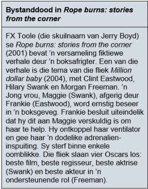 In die kassies by hierdie artikel verskyn inligting oor boeke met bystanddood as tema.