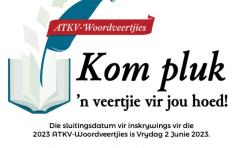 2023-04-13Hier is inligting rakende die 2023-ATKV-Woordveertjies. Die sluitingsdatum vir inskrywings is Vrydag 2 Junie 2023.