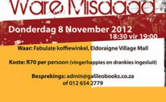 LAPA Uitgewers 2012-11-08 Kom vanaand om half sewe na Eldoraigne Village Mall se Fabulate koffiewinkel - en ontmoet die skrywer van Mens of monster.