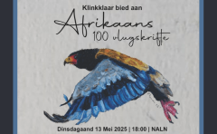 2025-04-29Op 8 Mei 2025 word die honderdste bestaansjaar van Afrikaans as amptelike taal gevier. Met hierdie viering in gedagte, het verskeie kunstenaars besluit om projekte rondom die getal 100 te loods. 100 Vlugskrifte word op 13 Mei 2025 om 18:00 by NALN aangebied en meer as veertig digters se werk is in die toonsettings gebruik.