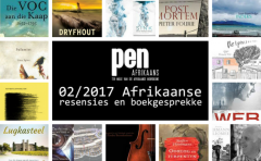 2017-02-07PEN Afrikaans begin vanjaar met ’n maandelikse oorsig van Afrikaanse resensies van Afrikaanse boeke wat in die vorige maand verskyn het en digitaal beskikbaar is.