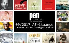 2017-10-10Hier is PEN Afrikaans se oorsig van Afrikaanse resensies wat in September 2017 verskyn het en digitaal beskikbaar is. Daar is ook skakels na boekbesprekings of -gesprekke en voorlesings wat op die radio of TV uitgesaai is.
