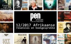 2018-01-19Hier is PEN Afrikaans se oorsig van Afrikaanse resensies wat in Desember 2017 verskyn het en digitaal beskikbaar is. Daar is ook skakels na boekbesprekings of -gesprekke en voorlesings wat op die radio of TV uitgesaai is.