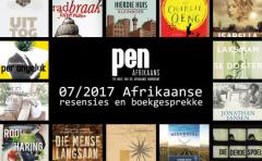 2017-08-08Hier is PEN Afrikaans se oorsig van Afrikaanse resensies wat in Julie 2017 verskyn het en digitaal beskikbaar is. Daar is ook skakels na boekbesprekings of -gesprekke en voorlesings wat op die radio of TV uitgesaai is.