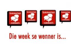 2013-02-20Lewer kommentaar onder aan enige LitNet-item vanaf 20 Februarie 2013 tot 26 Februarie 2013 en jou kommentaar kan kwalifiseer vir 'n weeklikse trekking.