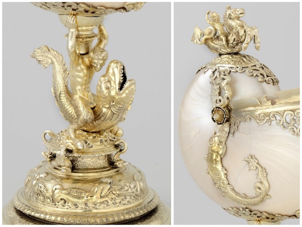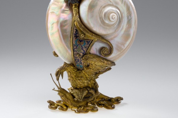 Figuur 1. Anoniem, nautilusbeker, circa 1590, vergulde silwer, 32,5 cm × 19,5 cm × 11,7 cm, Rijksmuseum, Amsterdam (openbare besit, met vriendelike vergunning van die Rijksmuseum)