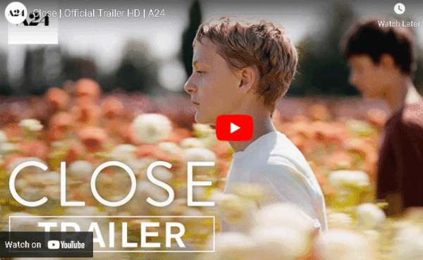 Hierdie Belgiese rolprent in Frans en Nederlands het in 2022 die Grand Prix by die Cannes-filmfees gewen. Dit is ook vir ’n Oscar benoem as beste buitelandse rolprent en het daarna op feitlik elke rolprentfees benoemings of pryse ontvang. Maar dit het gelei tot ’n fel debat oor die artistieke waarde van Close en wat dit tot die rolprentbedryf, en jeugfilms in die besonder, bydra – spesifiek verhale oor die verwerking van smart, die ontdekking van seksualiteit en die skade wat wankommunikasie en emosionele verwarring kan aanrig.