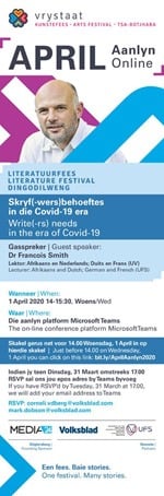 As a result of this new reach, we are integrating these online initiatives into the physical festival for 2021, in a week officially allocated by the University of the Free State for the festival in October.