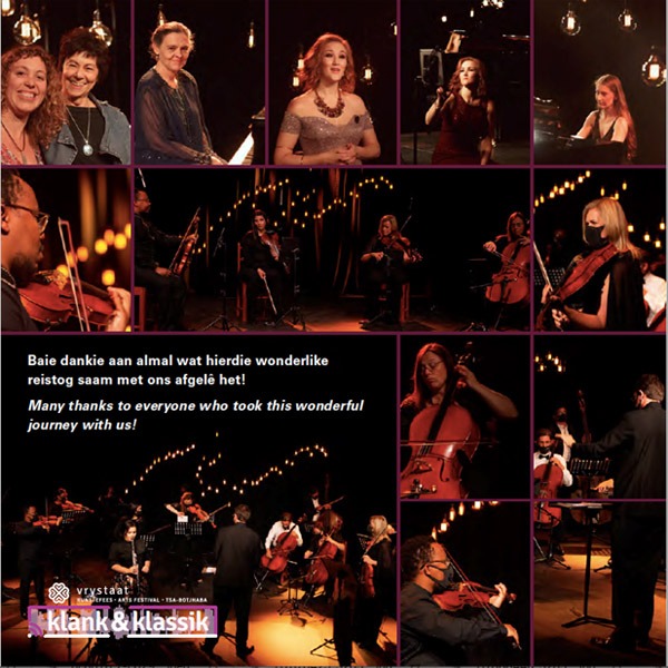 The first edition of Vrystaat Klank & Klassik, a festival celebrating classical music and sound art as an extension of the Vrystaat Arts Festival, was presented online in September 2020. Curated by Elretha Britz and coordinated by Hillétje Möller Bashew, the programme included the OSM Camerata from the Odeion School of Music, the celebrated Odeion String Quartet with “Hidden colours of the Free State”, soprano Magdalene Minnaar together with pianist Maryke Johnson with a programme called From Schubert to Schönberg, and Anneke Lamont with Diabelli Variations, Op 120.