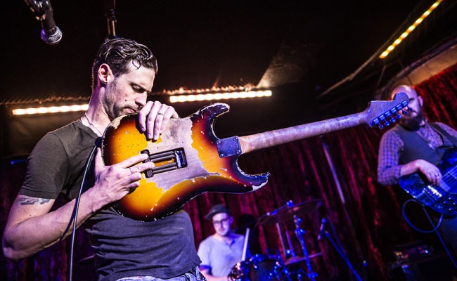 Ek het met my eie oë gesien hoe Dan daardie Saterdagmiddag sy Fender Strat instem met die gebruiklike klanktoets voor ‘n optrede. Daar was geen duiwel nie. Máár: om presies 20h30 dieselfde aand was die duiwel behoorlik los. Dan Patlansky se blues-rock-trio, met Dan (kitaar en stem), Clint Falconer (baskitaar) en Andy Maritz (tromme en tweede stem) het behoorlik die Londen Borderline se fondasies geskud.