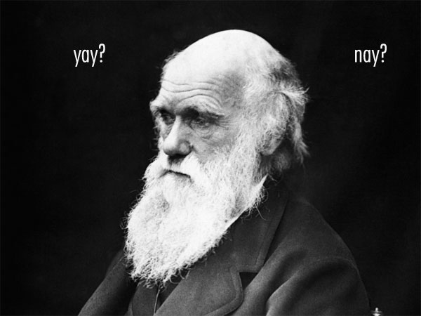 Ek besit net twee boeke wat enigsins iets met Darwin te doen het – en nie een van die twee is On the Origin of Species nie. Die eerste is ’n boek oor bekende wetenskaplike navorsingsekspedisies wat ek aangeskaf het omdat die illustrasies daarin potensiaal getoon het om mooi muurpapier te maak. Daar is wel heelwat feite oor Darwin se reis op die Beagle, maar nie die tipe goed wat mens veel insig in sy persoonlikheid gee nie. Meer nuttig was ’n gedeelte van ’n boek getiteld The Little Big Book of Love – Journals, Letters, Literature, Poetry, Recipes and Songs. Hierin is (buiten die genoemde literatuur, liedjies en resepte) ’n gedeelte van Darwin se dagboek afgedruk waarin die groot naturalis à la Hamlet worstel met ’n groot vraag: "This is the question – Marry – Not Marry." Onder die twee opsies lys hy dan heel saaklik ’n klomp voordele en nadele van elke uitweg – voordele van die huwelik, wat dinge insluit soos: "Home and someone to take care of house; Charms of music and female chit-chat". Die voordele van die enkelloper se lewe is onder andere "Conversation of clever men at clubs" en dat ongetroude mans (blykbaar) meer geld het om op boeke te spandeer.