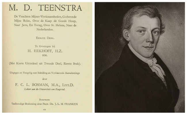 MD Teenstra se fassinerende reisverslag, De vruchten mijner werkzaamheden, gedurende mijne reize over de Kaap de Goede Hoop, naar Java en terug, over St Helena, naar de Nederlanden (1830), wat in 1943 deur die Van Riebeeck-Vereniging uitgegee is, is op aanvraag pas herdruk. Vir mense wat belangstel in die geskiedenis van Afrikaans is die publikasie van besondere belang, want dit sluit Teenstra se weergawe in van sy gesprek met ’n Caledonse boer en sy vrou, tesame met sy kommentaar op die vervormde Nederlands wat aan die Kaap gepraat word. Die publikasie bevat ook ’n indringende taalkundige beskouing deur JLM Franken oor die Afrikaanse gesprek. Die samespraak is een van die heel oudste geskrifte in Afrikaans. Die herdruk kos R235 vir lede van HiPSA (Historiese Publikasies Suider-Afrika, vroeër die Van Riebeeck-Vereniging) plus R50 posgeld. Vir nie-lede van HiPSA is die prys R285 plus R50 posgeld. Dit kan bestel word deur 'n e-pos te stuur (office@hipsa.org.za) of te bel (021-4238424, Woensdae en Vrydae, 10:30–1:30).