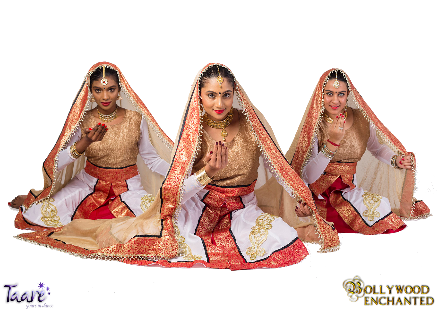 Foto van Bollywood Enchanted-dansproduksie met Taare in Kaapstad. Hierie dansers is geklee in kathak-drag (drag vir Indiese klassieke dans). Hulle doen ’n “Salaam” of “Groete”-pose tydens die dans uit die Mughal-era toe Indië onner Muslim-bewind was. (Foto: Victor Kirov)