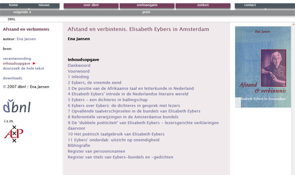 Ena Jansen se eerste artikel oor Elisabeth Eybers het op 12 Maart 1975 in Sarie Marais verskyn – dit was 'n onderhoud wat sy ter geleentheid van Eybers se 60ste verjaardag met haar op versoek van die redaksie gevoer het. Dit was die begin van 'n jarelange vriendskap tussen Eybers en die destydse 23-jarige Ena wat toe sopas in Nederland begin studeer het. Jansen het in 1992 aan Wits gepromoveer met 'n proefskrif oor Eybers se Amsterdamse bundels. Dit het in aangepaste vorm as 'n boek met baie foto's by JL van Schaik verskyn: Afstand en verbintenis. Elisabeth Eybers in Amsterdam. Dit was die eerste boek wat LitNet Akademies-redakteur Francis Galloway as uitgewer gewerf het. Die boek het later in 'n Nederlandse vertaling by Amsterdam University Press verskyn en is volledig aanlyn raadpleegbaar.