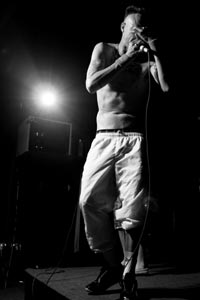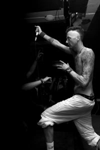Ninja, frontman, and the drive behind Die Antwoord (literally, The Answer), quickens the pace.