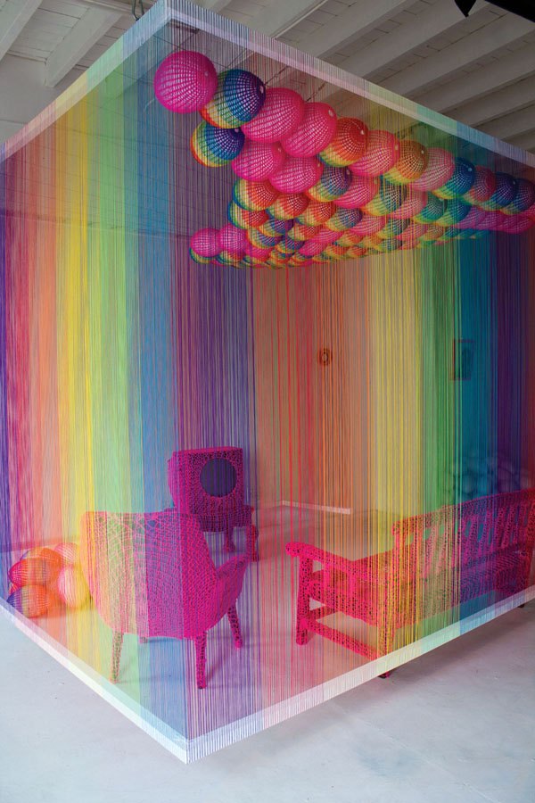 Die ontwerp beeld ’n tradisionele Afrikaner-voorkamer uit tydens die 1995-Wêreldrugbybeker-eindstryd op televisie. Die mure is in ’n reënboogspektrum van kleur gemaak uit garing, die meubels oorgetrek in pienk breiwerk. Uit die plafon hang daar 150 oorgetrekte rugbyballe. In konserwatiewe Afrikanerhuise is onderwerpe soos seksualiteit taboe – maar in my woonkamer word die idee op sy rug gedraai. Die televisiestel se klank is afgedraai en wie ook al binne-in die kamer is, kan gesels waaroor hulle wil.
