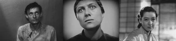 Figuur 19, 20 en 21. ’n Frontale-aansigskoot in Robert Bresson se A man escaped (1956); ’n frontale-aansigskoot in Carl Theodor Dreyer se The passion of Joan of Arc (1928); ’n frontale-aansigskoot in Yasujiro Ozu se Tokyo story (1953)