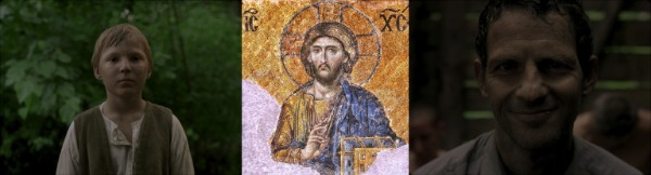 Paul Schrader skryf in Transcendental style in film: Ozu, Bresson, Dreyer (2018) dat die gebruik van frontale-aansigskote ’n ooreenkoms het met religieuse kuns. Frontale-aansig-skote, soos gebruik deur Yasujirō Ozu, Robert Bresson en Carl Theodor Dreyer, roep Bisantynse ikonoklasme in herinnering. Bisantynse mosaïekwerkers het Christus met ’n uitdrukkinglose gelaat en frontale aansig uitgebeeld, omdat hulle geglo het dat God dieper as dít gaan waaraan uitdrukking gegee kan word (Schrader 2018:125–6). Indien iemand dan na die ikoon kyk, poog Bisantynse kuns om die kyker se gedagtes na ’n hoër oorweging en oorpeinsing te bring (Agathias in Schrader 2018:126). Aspekte soos die lenige gelaatstrek, die geslote lippe, die wesenlose gesigsuitdrukking, die vooraansig en stilstaande kameraskoot veroorsaak dat die blonde seun, nes ’n Bisantynse ikoon, ’n voorwerp van eerbetoning aanneem (Schrader 2018:126).