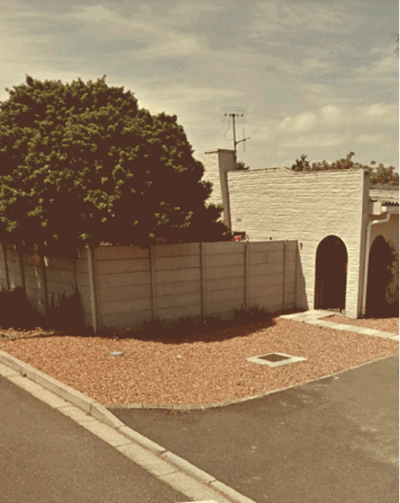 So ook die oorvloed Vibracrete-mure wat orals voor en tussen die huise was.