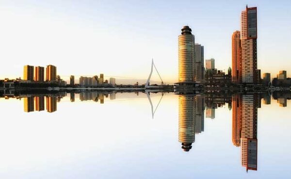 ’n Foto van moderne Rotterdam (erkenning: https://pixabay.com/photos/skyline-rotterdam-architecture-1601187/)