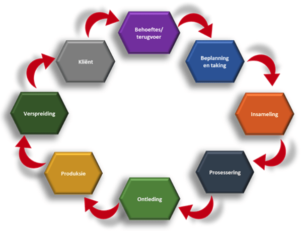 - Die insameling van inligting wat betrekking het op bedreigings en geleenthede deur middel van alle beskikbare bronne.