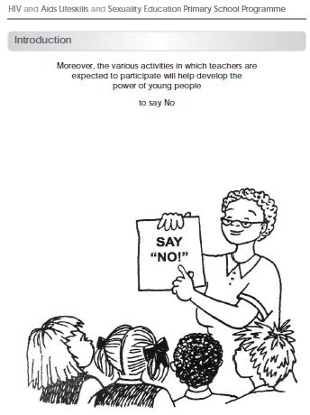 Een voorbeeld hiervan is die HIV and Aids Lifeskills and Sexuality Education Primary School Programme9 wat deur die departement beskikbaar gestel is. Hier is bladsy ix uit hierdie geskrif.