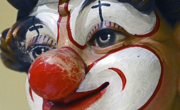 “Sit!” beveel Shortie weer. Hy haal ’n leertassie uit en slaan die flap oop. Binne is vier botteltjies met rooi, blou, groen en swart rome. Hy neem ’n spons en doop dit eers in die rooi room vir die mond. Toe hy klaar is met die gesig, kyk Peet in die spieël. Hy kry ’n draaigevoel op sy maag. Die gedagte tref hom: hy is seker veronderstel om vanaand in die sirkus te gaan optree! Hy syg neer op die bank en slaan sy oë op.