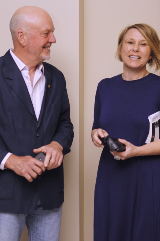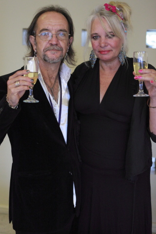 Melvyn Minnaar, kuns- en wynskrywer, wens Karin geluk.