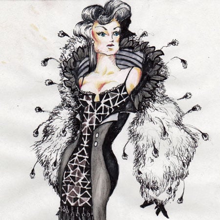 Dit is gewoonlik hierdie moeilike uitrustings. Elke groot jas is gewoonlik vir my die beste en dan probeer ek dit volgende keer oortref. Ek is lief vir hulle almal. Van dié wat vir my uitstaan, is die goue jas wat op De Kat se voorblad verskyn het, asook die groot silwer rok in vanjaar se Mannequin. Nog een wat uitstaan, is die “monsterjas” wat in Rainbow at midnight verskyn het. Die danser was binne-in die jas, waarop die jas losskeur en hy begin ballet dans het. Eintlik is dit ’n onmoontlike vraag om te beantwoord. Ek kan nie eers kies wat my gunstelinguitrusting in elke vertoning was nie; wat nog te sê van ’n gunsteling gedurende my loopbaan!