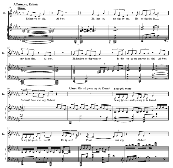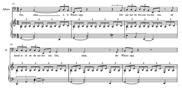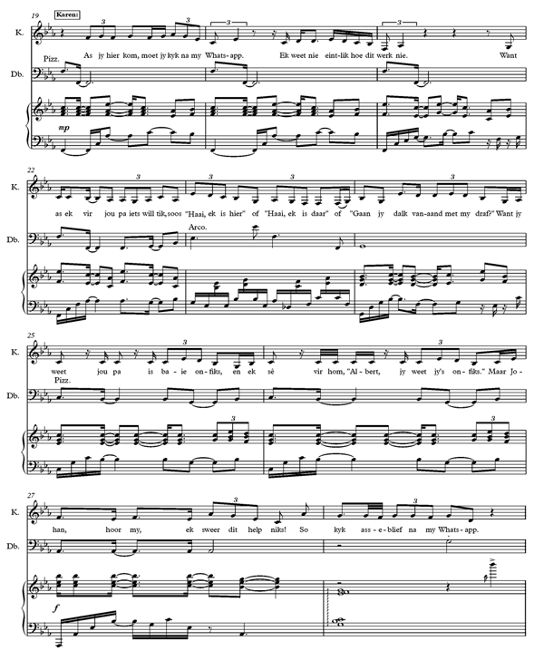 16 Gerber (2017) word hier as die verwysing gebruik, omdat die liriek en musiek in die betrokke werk gepubliseer is. Waar die bladmusiekuittreksels aangebied word, wil ons graag erkenning gee aan David Wolfswinkel, wat die komponis van die musiek is.