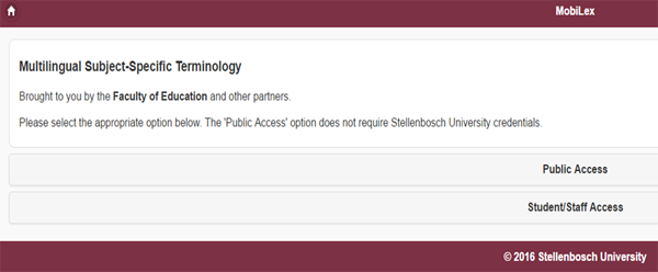 1 MobiLex is toeganklik vir Universiteit Stellenbosch-dosente en -studente by http://www0.sun.ac.za/mobilex.