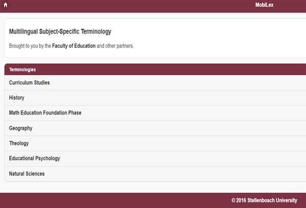 Die MobiLex-projek2 word deur die Fakulteit Opvoedkunde ontwikkel as deel van die fakulteit se taalplan en sluit aan by strategiese doelwitte om veeltaligheid van studente te bevorder en te ontwikkel. Die hersiene Taalbeleid van Stellenbosch-universiteit maak voorsiening vir die ontwikkeling van meertalige woordelyste met Afrikaans as een van die tale (Universiteit Stellenbosch 2016:9). Die doelwit van MobiLex is onder meer om studente te ondersteun in die ontwikkeling van konsepgeletterdheid in verskillende eerstejaarmodules (met verdere uitbreiding na alle voorgraadse modules) van die Departement Kurrikulumstudie. Studente moet in ’n veeltalige omgewing kan funksioneer en benodig ondersteuning, veral waar die taal van onderrig en leer nie hulle moedertaal is nie. In hierdie afdeling word daar op Afrikaanssprekende en Xhosasprekende studente gekonsentreer, aangesien daar minder leksikografiese vakbronne in dié tale bestaan as in Engels.