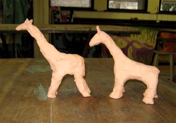 Na elke les is daar ’n refleksievorm ingevul en na aanleiding daarvan is die volgende projekte beplan. Hierdie onderwyser was vasberade om te verbeter op ’n reeds bestaande kunsopvoedingpraktyk en vra gedurende die gesprekke baie vrae. Sy wou graag driedimensionele werk aandurf, maar meen haar kennis skiet te kort; ’n les is saam beplan waarin die kinders klei gebruik om kameelperde te maak. Die mentor demonstreer die les aan een groep terwyl die onderwyser waarneem en hierna doen die onderwyser dieselfde les met die ander klasgroep. In foto S2 is voorbeelde van die kinders se werk, met weinig verskil in die resultate van die onderwyser en mentor se aanbieding.