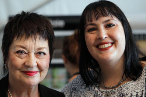 Helene de Kock, die skrywer van Debora en seuns, saam met haar dogter.
