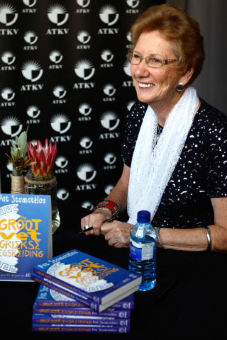 Pat Stamatélos teken kopieë van My groot vet Griekse egskeiding.
