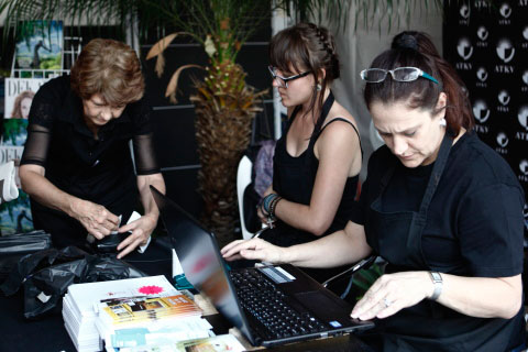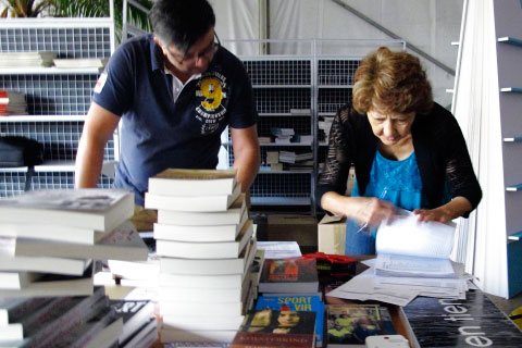 Die ATKV-Boekwinkel was baie besig. Hier bedien Annette van Heerden, Erentia Bedeker en Hannelie van Schalkwyk die klante.