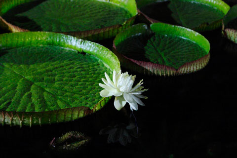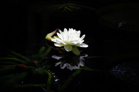 Die vreemde Santa Cruz-waterlelie maak in die nag oop. Hierdie een blom in die botaniese tuin nie ver van die ATKV-Boekwinkel nie.
