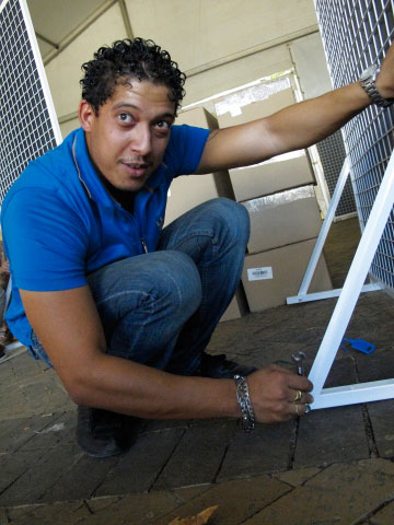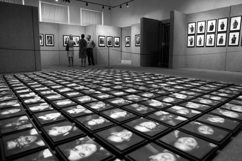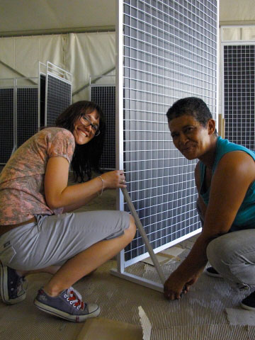Die fotograaf Erhardt Thiel (agter regs) word verdwerg deur sy installasie.