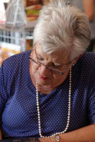 Joan Hambidge loer in die by die ATKV-boekwinkel. Haar bundel Matriks het ontsettend goed verkoop.