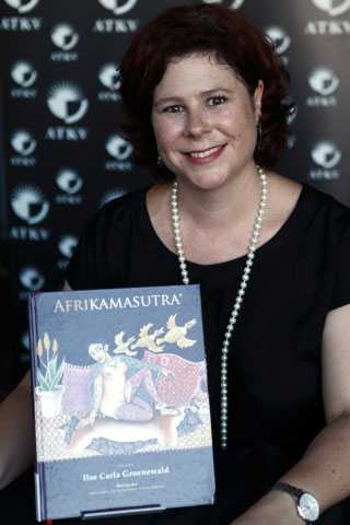 Ilse Carla Groenewald met ’n kopie van haar pragboek die Afrikamasutra.