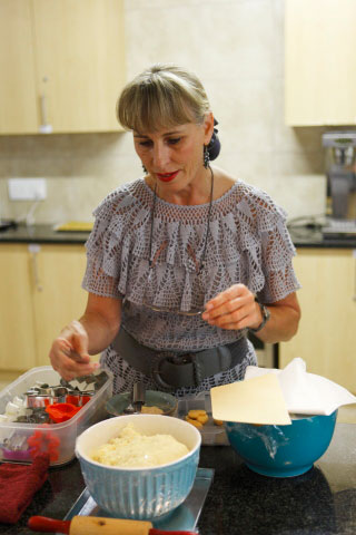 Nettie Cilliers, die skrywer van 101 Kleinkoekies, berei voor vir ’n kosdemonstrasie.