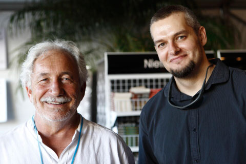 Tiaan Langenegger en Mynhardt Joubert hou kopieë van hulle boek Makietie vas.