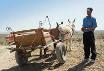 Hy kyk en daar is die draad toe allietyd los. Hy maak dit reg en ry tot by die koöperasie. Daar vertel hy wat gebeur het. Vra die mense vir hom: ‘Waffer perd het met jou saamgepraat? Die witte of die swarte?' Hy sê dit was die swarte gewees. Sê die koöperasie se mense vir hom: ‘Jy kan bly wees dit was die swart perd gewees. Daai wit perd weet niks van mouterkarre af nie!' "