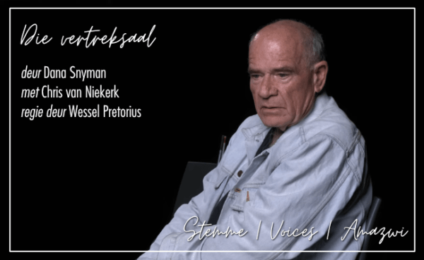 LitNet se Stemme | Voices | Amazwi is ’n reeks kort, kragtige monoloë, aangebied in samewerking met die Suidoosterfees, NATi en die ATKV. Kyk hier na Chris van Niekerk se vertolking van Dana Snyman se Die vertreksaal. Die teks van die monoloog is hier beskikbaar, asook ’n gesprek tussen die akteur en die regisseur.