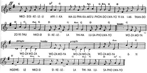 Tweedens, die feite met betrekking tot die Suid-Afrikaanse volkslied. Die huidige nasionale lied is ’n saamgestelde werk met drie komponente. Die eerste gedeelte bestaan uit “Nkosi sikelel’ iAfrika” met Xhosa-, Zoeloe- en Sesotho-woorde, terwyl die tweede en derde dele bestaan uit die musiek van “Die Stem” met onderskeidelik Afrikaanse en Engelse woorde. In hierdie vorm is die volkslied geproklameer as die nasionale lied deur die voormalige staatspresident, Nelson Mandela, in opdrag van die destydse Kabinetsminister op 10 Oktober 1997.