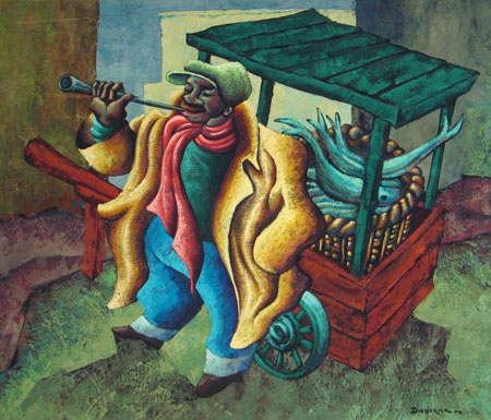 | Diederick During (1917–1991), Snoek Seller / Snoekverkoper, geen datum, gemengde media op kartonbord. |