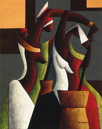 | Diederick During (1917–1991), Cubist Nude, geen datum, gemengde media op kartonbord. |