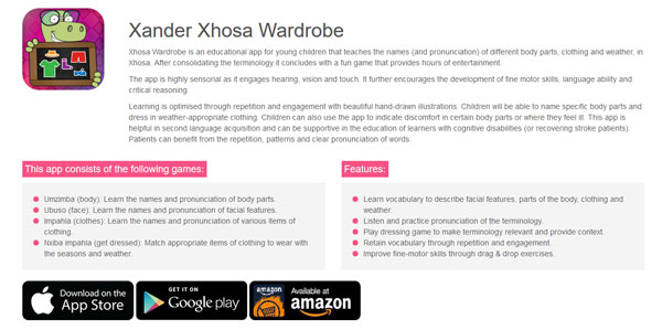 Ons is baie trots om hierdie jaar geselekteer te wees as ’n finalis in die Education-kategorie van die Apps Africa Innovation Awards wat op 14 November plaasvind. Xander het verlede jaar die Best Kids App-toekenning ontvang in Silicon Beach App Awards in Los Angeles.
