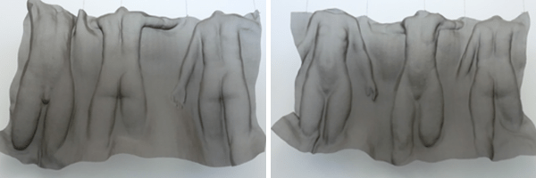Figuur 5 en 6. Mynoria deur Babro Bäckström 1980, Malmö Art Museum, Sweden. (Toestemming van museum.) Die menslike liggaam word uitgebeeld as ’n monumentale entiteit. Die sensitiwiteit in die figure met eksplisiete naaktheid beeld die genitalieë uit as integrale dele van die totale menslike bestaan sodat beide vroulikheid en manlikheid voorgestel word as komponente van heelheid (wholeness). Die liggaam word sodoende méér as net “vlees en bloed” en verkry die simboliese betekenis van menswaardigheid – die spirituele dimensie van siel-volheid. Sensualiteit, seksualiteit en sielvolheid is wesentlike aspekte van sin en betekenis. Foto’s: D.J. Louw