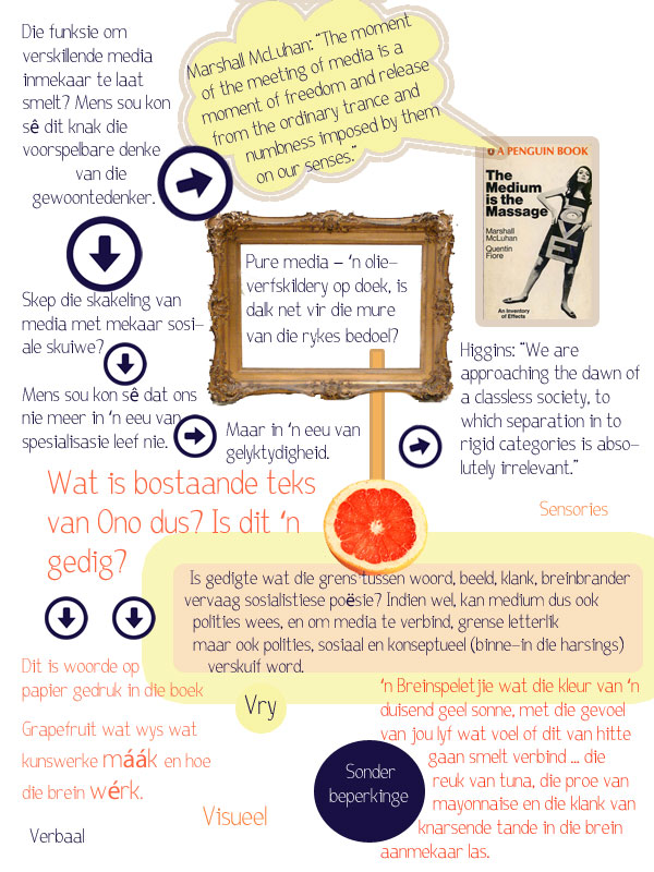 In die aanhaling van Ono gebruik sy die beeld van 'n tuna toebroodjie, en die eet daarvan, om die leser 'n aktiewe belewing te gee van haar gedig en om sodoende die gedig "lewend te maak";